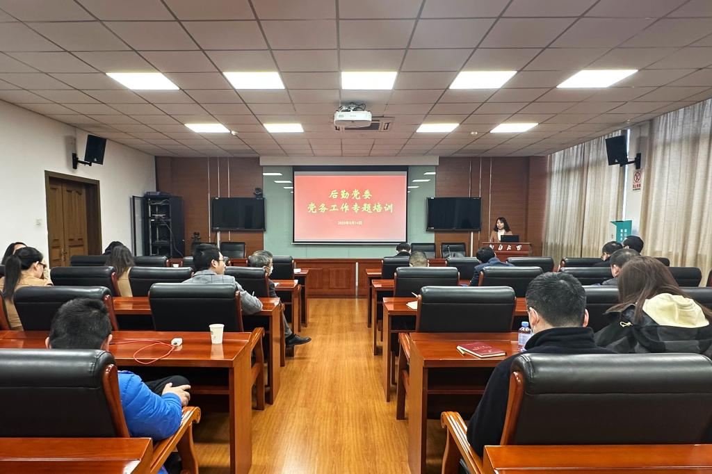 为学习贯彻党的二十大精神,推进党支部标准化规范化建设,提升党务工作人员的业务素质和能力。3月14日上午,后勤党委邀请校党委组织部、党校办公室正科级组织员董小平作党务工作专题培训,后勤党委书记朱新伟、副书记金明媚,以及后勤各党支部委员参加会议。会议由金明媚主持。