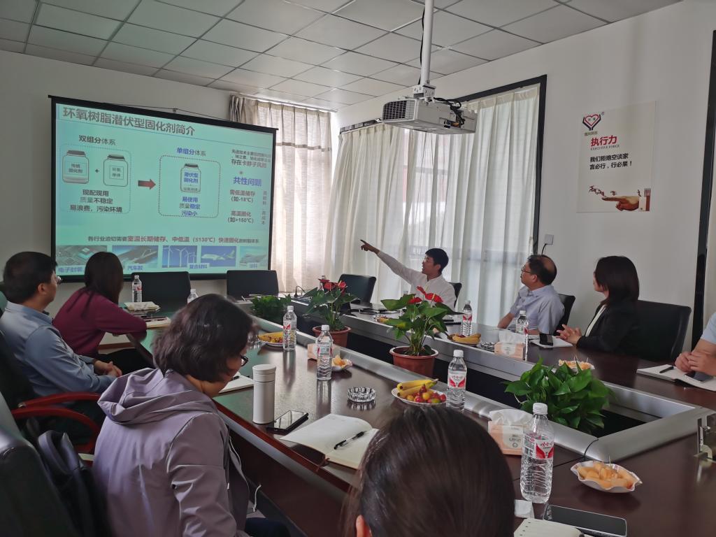 对接活动中,深入企业调研,先后走访了江阴市庆丰化纤有限公司、恒兴涂料有限公司、爱科森博顿聚合体有限公司等企业,与会人员与企业负责人就企业技术难题、进一步强化科技赋能等问题进行了深入交流,并现场发布了潜伏型固化剂、生物基热固性树脂、高性能可降解环氧树脂、高抗蠕变可重塑热固性树脂、塑料升级改造、功能水性树脂、有机硅改性环氧树脂等多项科技成果。