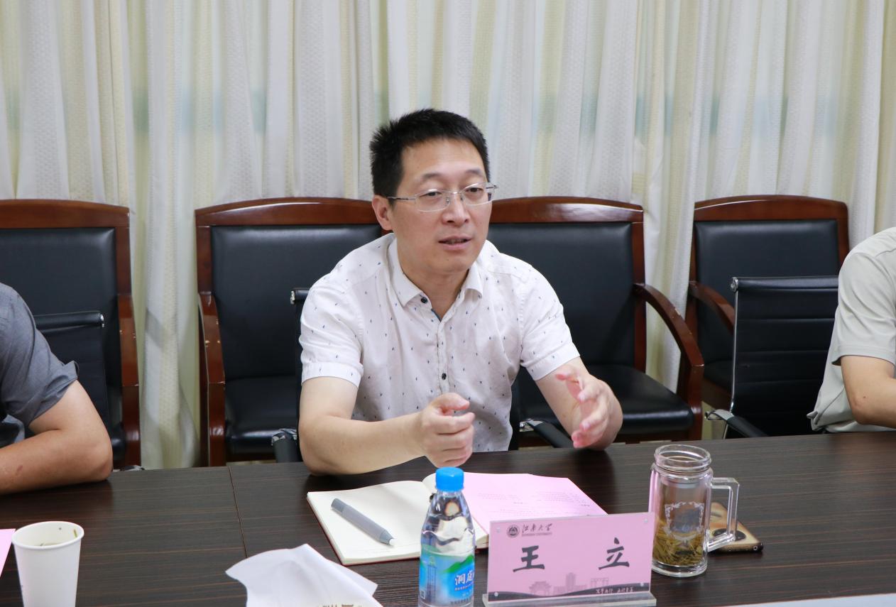 王立对黄松波一行的到来表示热烈欢迎,介绍了学校的历史沿革、发展概况、学科建设、成果转化及社会服务等情况,并着重强调了学校与南通市以及海门区等合作基础,希望充分发挥江南大学的学科优势和科研创新能力,助力四甲镇特色产业高质量发展。