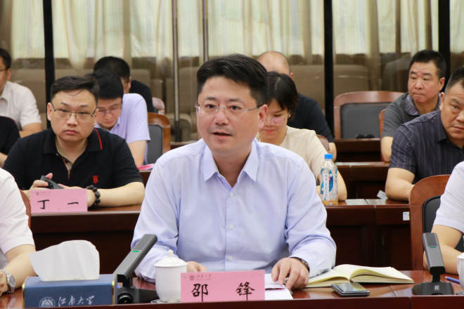 吴正国对邵锋一行的到来表示热烈欢迎,简要介绍了学校的历史沿革、办学格局、组织架构、科学研究、人才培养、社会服务等方面的发展现状。他强调,学校长期以来致力于科技创新和产教融合,如东作为长三角产业创新发展的热土,食品精深加工、生物医药、高端纺织等产业基础雄厚、前景广阔,与我校的优势学科高度契合。邵锋作为我校98级杰出校友,更能发挥好桥梁纽带作用,他希望校地双方可以开展形式多样的交流合作,拓宽成果转化渠道,为如东建设长三角北翼现代化强县注入“江南动能”。