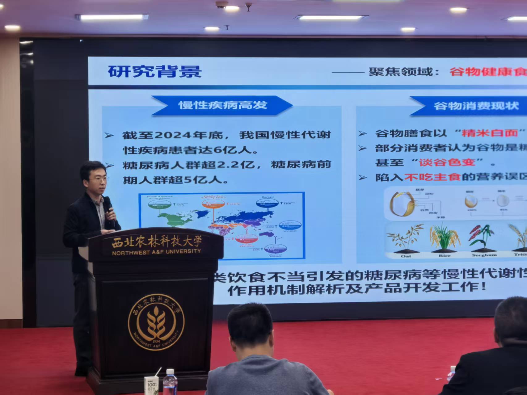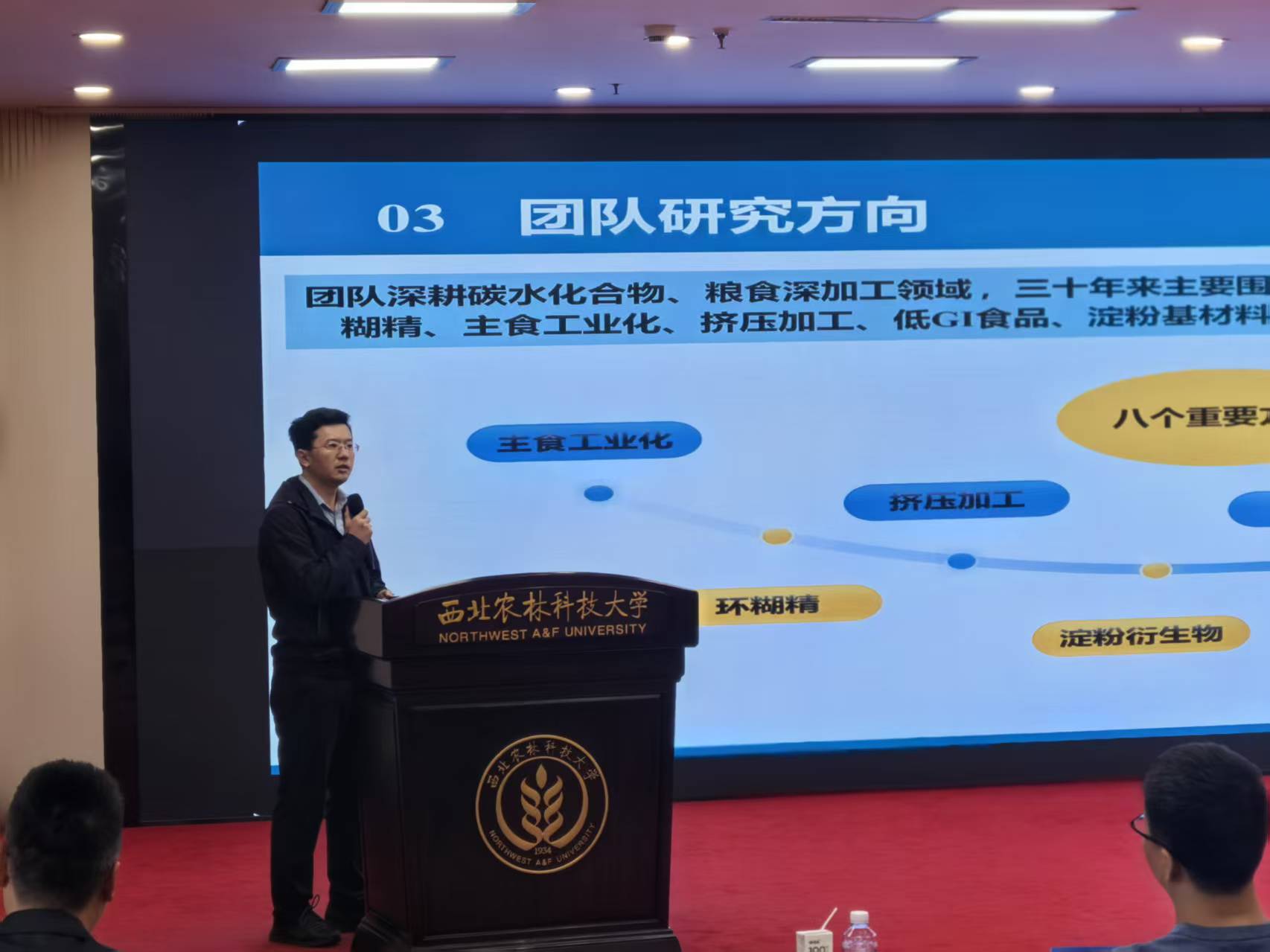 姚卫蓉作“生鲜食用农产品包装标识技术与标准化”专题讲座,邱超代表团队作“碳水化合物深加工综合利用”成果推介,樊铭聪作“谷物营养与健康配料开发”成果推介。