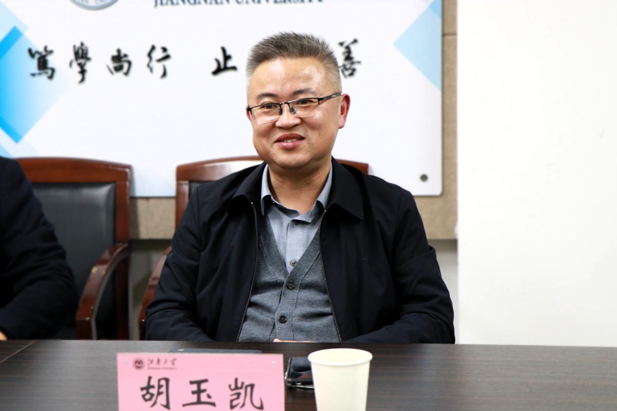 胡玉凯对学校的热情接待表示感谢,从区位优势、产业特色、近期重点推进工作等方面,介绍了宿州市情况。希望能进一步加强与江南大学的深入合作,推动更多科技成果在宿州市转化落地,助力地方经济发展。