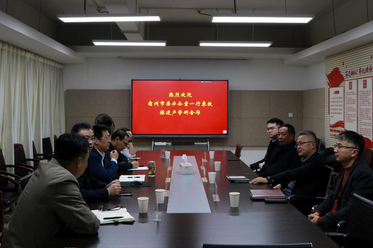 11月12日,宿州市委副秘书长、市委办公室主任胡玉凯一行,来校交流推进校地产学研合作。产业技术研究院院长王立,对外合作与市校共建处副处长任增亮,商学院副院长、宿州分中心主任王雷,宜兴校友会会长张云等参加座谈。