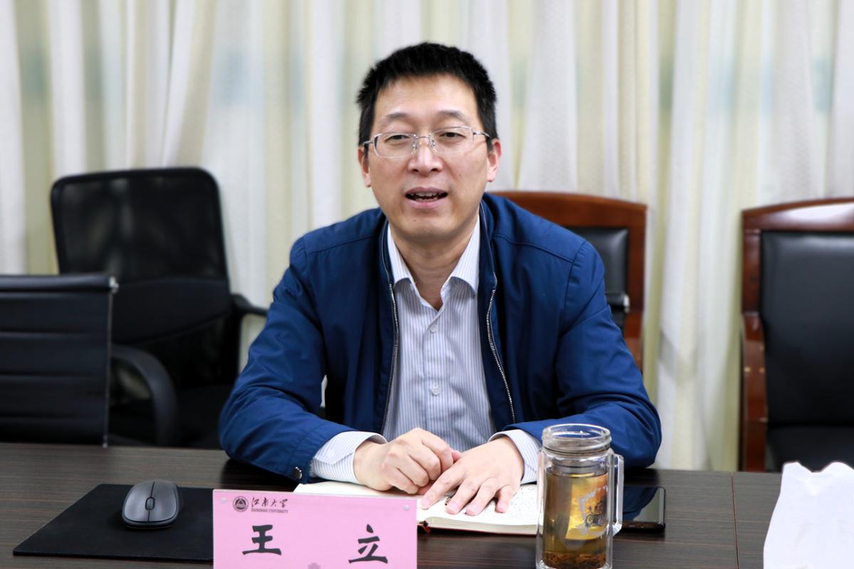 王立对胡玉凯一行的来访表示欢迎,从学校历史沿革、办学规模、校区建设、学科特色、成果转化、平台建设和社会影响等方面介绍了学校概况。他表示,宿州特色产业,与我校优势学科高度契合,合作基础良好,尤其双方共建技术转移分中心以来,交流更加深入,合作更加紧密,学校将充分发挥学科优势,助力宿州市特色产业高质量发展。王雷汇报了宿州分中心工作情况。