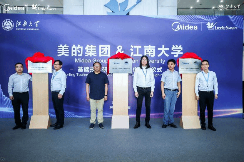 9月12日下午,美的集团洗衣机事业部与江南大学举行科研战略合作协议签约仪式,暨美的集团洗衣机事业部与江南大学联合成立三大研究中心揭牌仪式在无锡小天鹅股份有限公司举行。美的集团洗衣机事业部总裁陆剑峰、研发中心主任徐彭城等代表,中国工程院院士、江南大学校长陈坚,副校长张凌浩与设计学院、纺织服装学院、物联网工程学院等代表及项目团队出席了签约仪式。