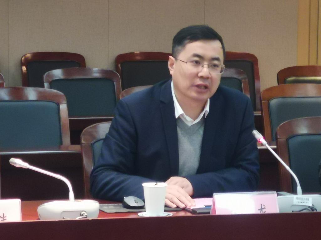 产业技术研究院院长刘龙介绍学校产学研合作情况