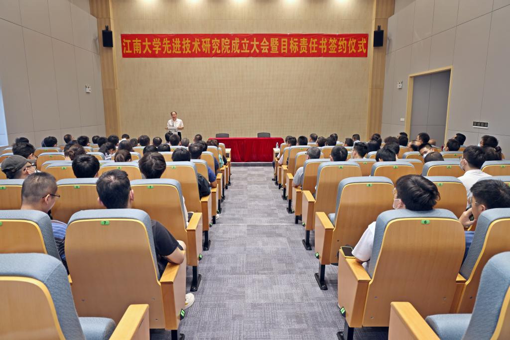 9月23日上午,江南大学先进技术研究院成立大会暨目标责任书签约仪式在未来食品科学中心一楼报告厅举行。校长陈卫、副校长顾正彪、筹建工作领导小组成员、入驻团队全体老师及研究生代表参加会议。会议由校长助理张光生主持。