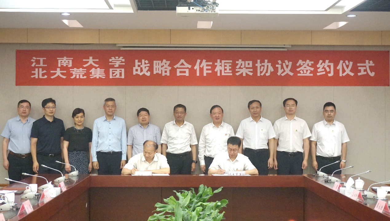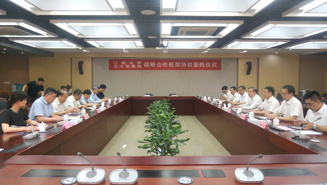 6月16日下午,我校与北大荒集团战略合作框架协议签约仪式在行政楼B307会议室举行。北大荒集团党委书记、董事长王守聪,党委委员、副总经理王贵,北大荒食品集团党委书记、董事长翟永胜等一行7人出席会议。中国工程院院士、江南大学校长陈卫,中国工程院院士、未来食品科学中心首席科学家陈坚,校党委常委、副校长顾正彪出席签约仪式。签约仪式由产业技术研究院院长刘龙主持。