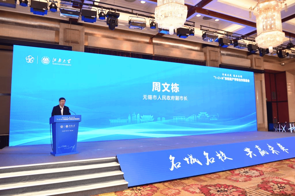 周文栋对“1+2+N”科技成果转化体系建设工作表示充分肯定,对江南大学长期以来给予无锡经济社会发展的支持和帮助表示衷心感谢。他指出,江南大学有一批与无锡市产业发展高度契合的学科和专业,是无锡高质量发展的“创新源头”和“人才摇篮”,双方在政产学研合作领域建设了一批重大创新平台,加强了与本地企业的合作,学校在提升全市科技创新能力和促进企业技术进步等方面发挥了极其重要的作用。他希望与会各方以建立“1+2+N”市校政产学研合作体系为契机,加强机制体制建设,进一步提高科研人员科技成果转移转化积极性;紧盯企业需求,校企深度融合,形成学校支撑在锡企业发展、在锡企业反哺学校的良性循环态势;并在基础研究、金融助力、产业赋能、人才引育等方面相互成就,将“江大印记”深深烙进无锡的“发展基因”。