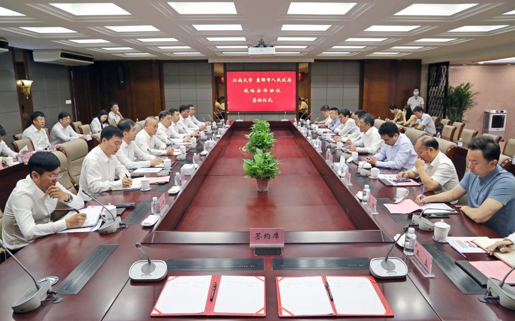 6月11日上午,辽宁省盘锦市委书记王炳森带队,盘锦市委常委、副市长刘占明,市委常委、秘书长郭克敏及市发改委、商务局、粮食和物资储备局、兴隆台区和临港经济区主要负责人等来校考察交流,就深化校地产学研合作进行座谈,双方签署校地合作协议。无锡市政府副市长马良,市政府副秘书长、市生态环境局局长彭红宇等陪同考察。中国工程院院士、校长陈卫,校党委副书记戴月波,校党委常委、副校长顾正彪,以及学校相关职能部门和学院主要负责人参加了座谈会议。会议由校长办公室主任黄敏主持。