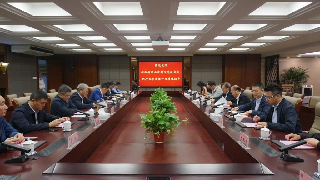 10月9日上午,江西省农业农村厅党组成员、副厅长李文信带队,南昌市农业农村局、上高县统战部相关负责人及企业家代表来校考察交流。校党委常委、副校长顾正彪,产业技术研究院院长王立、副院长李博,食品学院教授陈正行及教师代表,无锡金农生物科技公司负责人参加了座谈。会议由李博主持。