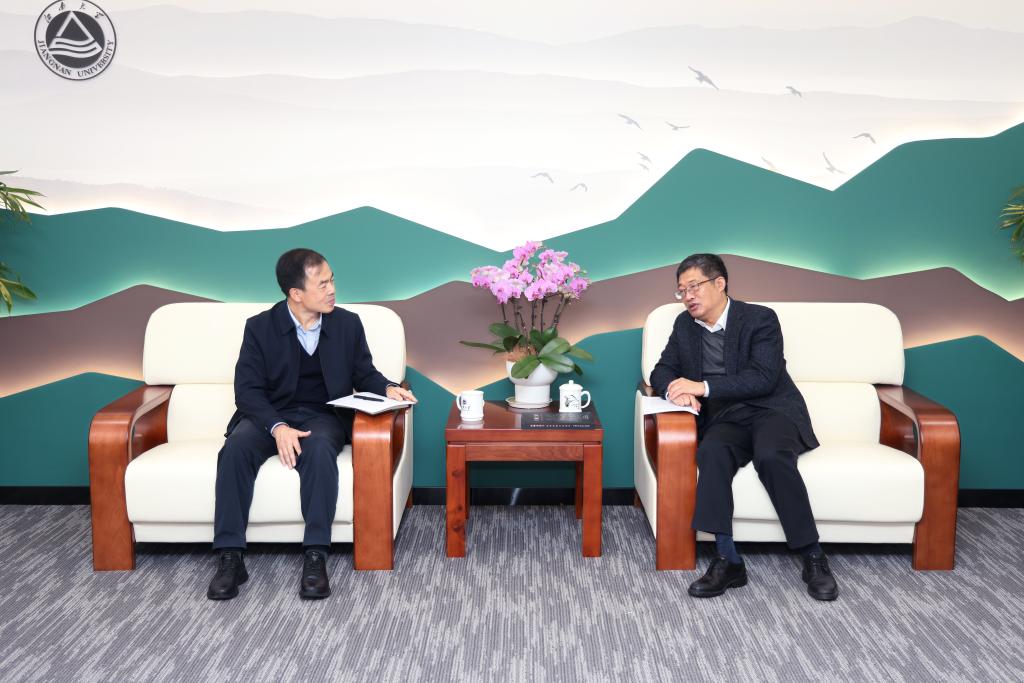 会前,顾元亮一行拜访了校长陈卫,并介绍了贵州省委、省政府与中国工程院签署战略合作协议,争取有影响力的院士牵头推动贵州产业发展的情况,希望江南大学在生态食品领域支持帮扶安顺市产业发展。陈卫与顾元亮围绕安顺市医药及旅游食品产业高质量发展深入交流。