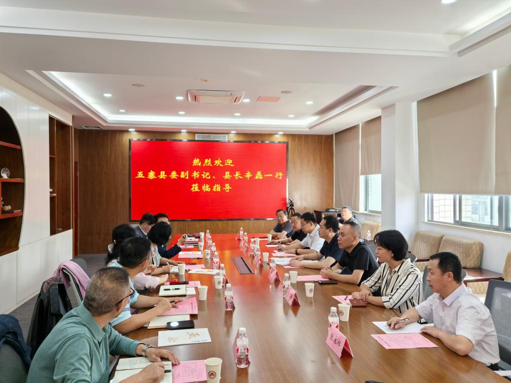辛磊对江南大学近年来取得的成果表示祝贺,并从五寨县区位优势、地理环境、经济发展、产业特色等方面具体介绍了五寨县的产业情况和未来规划。他表示,希望进一步共商合作模式,依托江南大学学科优势和人才资源,科技赋能五寨县特色产业发展,推动传统产业转型升级。
