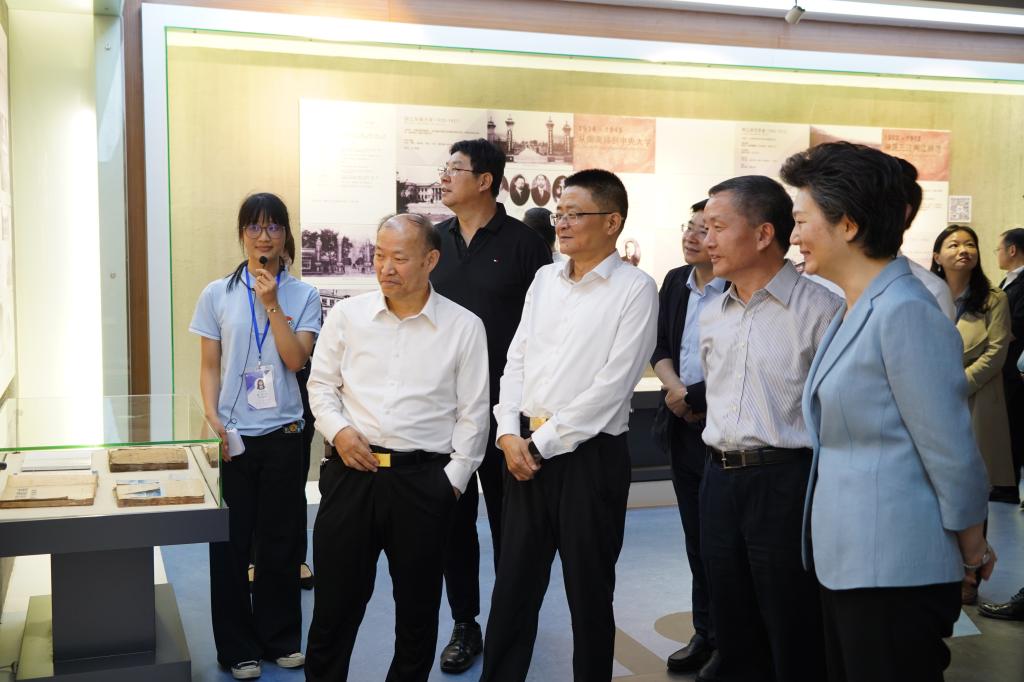 沈洪兵一行先后考察了校史馆、未来食品科学中心、食品科学与资源挖掘全国重点实验室,了解了学校发展历程、国家重点实验室和未来食品科学中心基本情况。调研中,沈洪兵肯定了学校的办学成绩,对学校的创新成果点赞,勉励学校紧扣国家公共卫生和健康安全重大需求,持续加强科研攻关,继续做强优势学科,用科研成果服务健康中国战略,为公共卫生事业发展做出更多贡献。