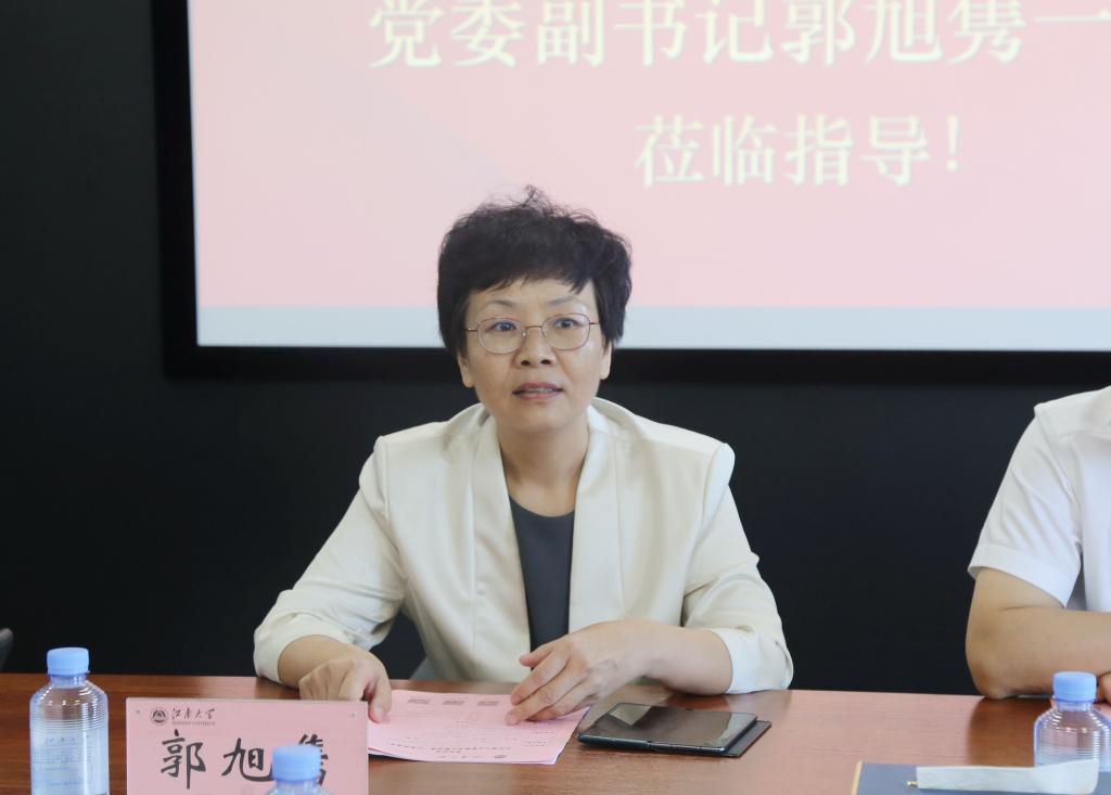 郭旭隽对江南大学的热情接待表示感谢。她从学校建校历史、学科建设、师资队伍等方面介绍了学校情况。她表示,江南大学特色鲜明,办学效益显著,在办学治校的多个关键环节,特别是学科建设、师资建设和育人实践方面,都提供了很好的借鉴。希望通过此次调研,学习江南大学在办学方面的先进做法,提升学校整体管理能效,助力学校全国“双一流”创建工作。