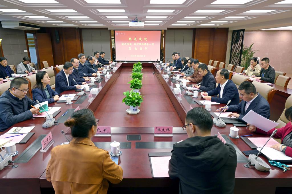 10月21日上午,宿迁学院党委书记徐德、校长刘志远率党政代表团,洋河酒厂股份有限公司党委书记、董事长张联东,副总裁周新虎一行20余人来我校考察调研。江南大学党委副书记符惠明、戴月波,副校长张影陆,以及相关部门、学院负责同志参加座谈交流。座谈会在行政楼B305会议室举行,由党委常委、党委办公室主任朱飞主持。