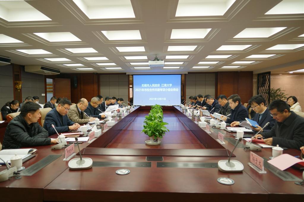 12月31日上午,无锡市与江南大学2021年市校合作共建专项小组会商会在我校召开。江南大学党委副书记符惠明,无锡市发展改革委副主任俞勇军、市政府教育督导室专职副主任冯益民、市卫生健康委副主任过栋、市科技局党组副书记副局长侯海峰、市教育局副局长惠恭健,学校市校共建合作办公室主任陈琳、产业技术研究院院长刘龙、人才工作办公室主任刘晓宏、基建处处长周伟涛、医学院院长马鑫,市校相关职能部门代表出席会议。会议由无锡市发展改革委社会发展处处长陈振场主持。