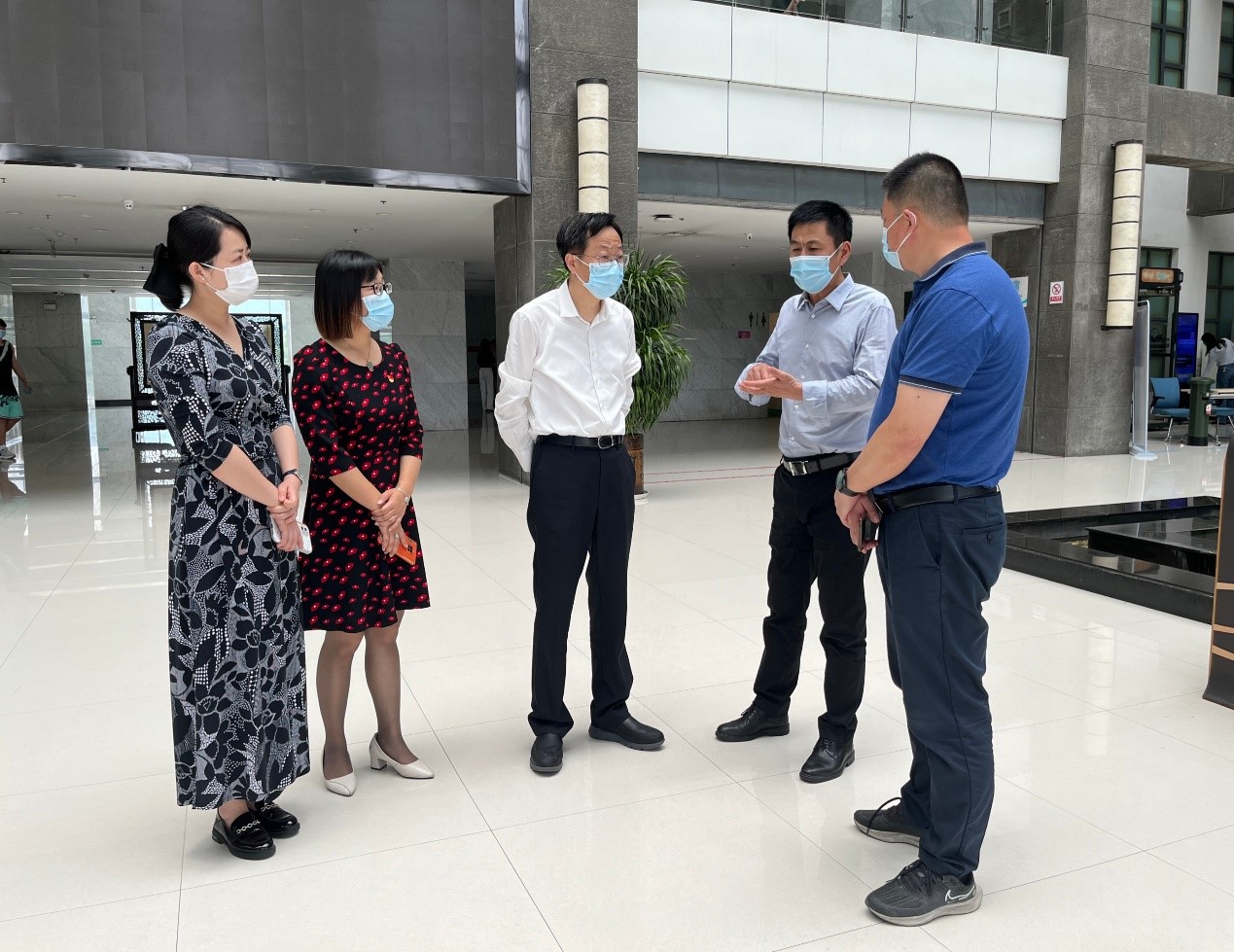 6月1日上午,无锡市委教育工委书记、教育局局长范良,办公室主任孙伟忠一行来校检查端午假期疫情防控工作。校党委副书记戴月波,后勤保障系统党委书记叶军、后勤管理处处长刘长青、校长办公室副主任代卉、图书馆副馆长江琳娜、后勤管理处副处长汪洋等陪同检查。