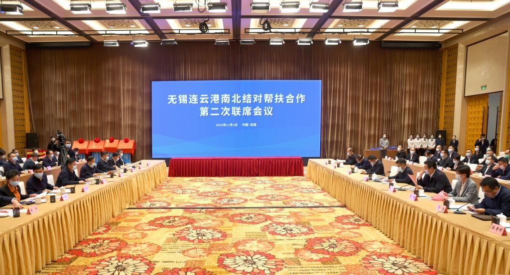11月4日上午,无锡连云港南北结对帮扶合作第二次联席会议在锡召开。无锡市委书记杜小刚、市长赵建军携相关市领导及部委办局、各区(市)主要负责人,与连云港市委书记马士光、市长邢正军一行座谈交流并陪同考察。江南大学党委常委、副校长顾正彪、吴正国,市校共建合作办公室主任陈琳、产业技术研究院院长刘龙等参加联席会议。