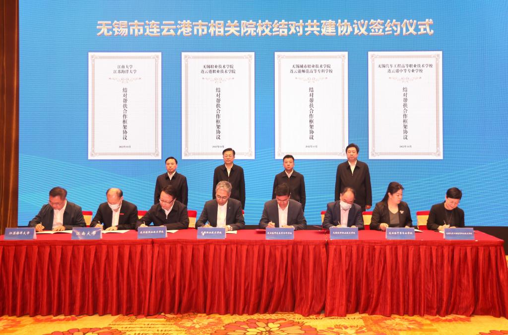 开展南北结对帮扶合作,既是政治责任,也是战略机遇。今年5月,省委省政府作出深化南北结对帮扶合作、优化结对帮扶合作关系的部署安排,无锡市与连云港市确立了结对关系。本次签约是江南大学贯彻落实省委省政府决策部署的实际行动,也是深化部省共建、加强市校合作的务实举措。下一步,江南大学将与连云港市、江苏海洋大学一道合力抢抓战略机遇,围绕科技成果转化、科学研究服务、人才干部培养、师资队伍建设等内容强化合作帮扶,积极助力连云港市加快推进人民期待的现代化新港城建设,大力支持江苏海洋大学加快建成国内知名、特色显著的高水平应用研究型海洋大学,共同谱写新时代区域协调发展、高等教育内涵式发展的精彩篇章。