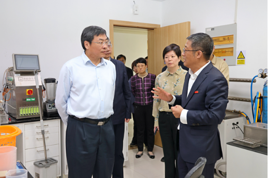 在未来食品科学中心,马欣一行听取了陈坚关于中心建设目标、运行模式,以及在科学研究、产业化服务、师资引培、人才培养等方面的进展情况介绍,并深入食品合成生物学与生物制造实验室、中试平台,详细询问、了解科研项目实施和产品生产情况。该中心成立于2019年11月,致力于食品组分代谢与营养健康靶向调控技术、细胞与微生物种质资源挖掘改造与工程化技术、食品分子重组重构等关键核心技术的重点突破。