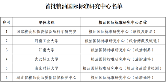 为深入贯彻习近平总书记关于提升标准国际化水平的重要指示精神,认真落实《国家标准化发展纲要》,强化贸易便利化标准支撑,加大粮油标准国际交流力度,促进粮食内外贸易质量标准协调衔接,提升中国粮食标准国际影响力,根据《国家粮油标准研究验证测试机构管理暂行办法》(国粮标规〔2022〕73号)有关规定,经相关单位自愿申报、省级粮食和物资储备部门和有关央企审核推荐、专家评审、国家粮食和物资储备局审核及立项公示等程序,确定国家粮食和物资储备局科学研究院、江南大学等6家单位为首批粮油国际标准研究中心。