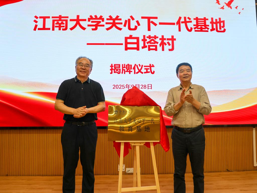 娄国栋在讲话中指出,关心下一代工作需立足实践育人根本。白塔村不仅是全国文明村镇、全国生态文化村、全国特色村、全国乡村治理示范村,还是江苏省先进基层党组织,白塔村的发展成就与江南大学的学科优势高度契合,有着合作渊源,在多个领域有着互动和联动,包括宜兴食品与生物技术研究院等作为校地合作的“硬核”载体,已在生物制造、产业升级等领域取得多项突破。此次关心下一代教育基地挂牌,既是校地联动的深化,更是为青年学子搭建的“知行合一”实践舞台。未来,双方将依托基地开展“田野思政课”、专业实习、课题调研等活动,实现“人才培养”与“乡村振兴”的双向赋能,推动思政教育、专业实践与乡村振兴需求深度融合。