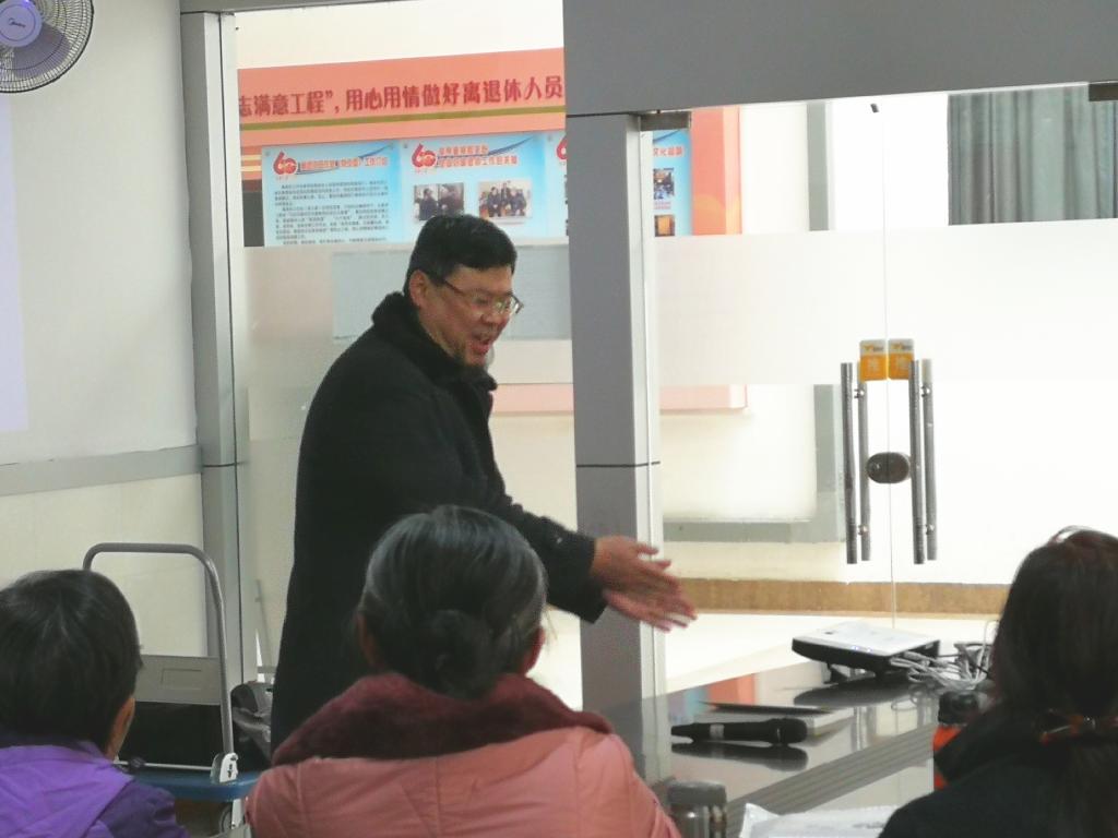 为满足许多退休教职工对朗诵的爱好,在校离退休处领导的关心支持下,经由郭锡华老师的积极筹备,特邀我校人文学院声乐副教授李恩忠讲课指导,2019年3月6日下午,老体协“江南诵读会”在蠡湖片区会议室正式开班了。