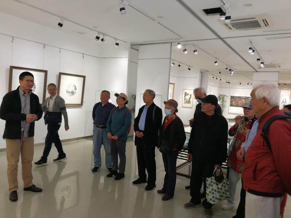 在设计学院,吴宇华一早就在展厅等候老科协会员们的到来,他热情地带领大家参观并详细介绍了自己各种风格的画作以及收藏品。他娓娓道来从教33周年书画之路,渐渐地仿佛把大家引入到中华古老文化的浩瀚大海,激发起大家对中华文化博大精深的自信心和自傲感。