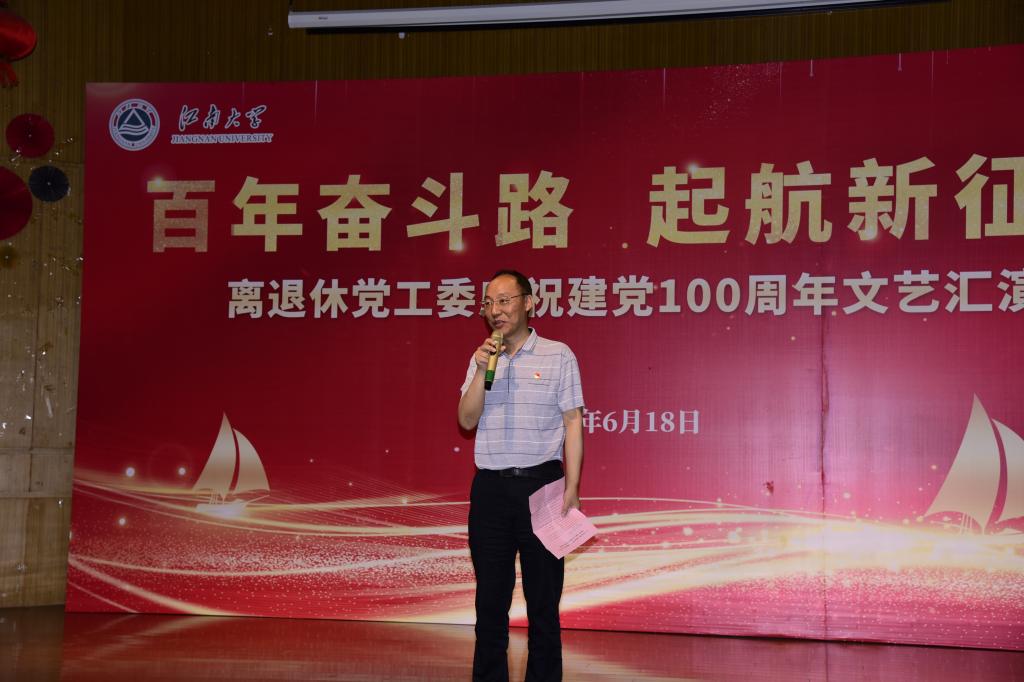 为庆祝中国共产党成立100周年,引导老同志唱响共产党好、社会主义好、改革开放好、伟大祖国好的时代主旋律,6月18日下午,离退休党工委、离退休工作处在南区大学生活动中心一楼歌舞厅,举办“奋斗百年路 启航新征程——庆祝中国共产党成立100周年文艺汇演”。校党委常委、党委办公室主任、党委统战部部长朱飞出席活动并致辞。