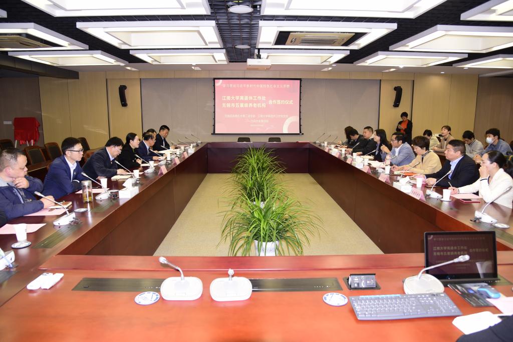许群首先从党的建设、为老服务、作用发挥等3个方面介绍了江南大学离退休工作的基本情况以及合作的背景及意义。她说,当前离退休党工委、离退休工作处正按照学校统一部署,认真开展学习贯彻习近平新时代中国特色社会主义思想主题教育,今天我们与三家五星级养老机构签约,是学习贯彻习近平新时代中国特色社会主义思想主题教育,切实为民办实事的具体行动。