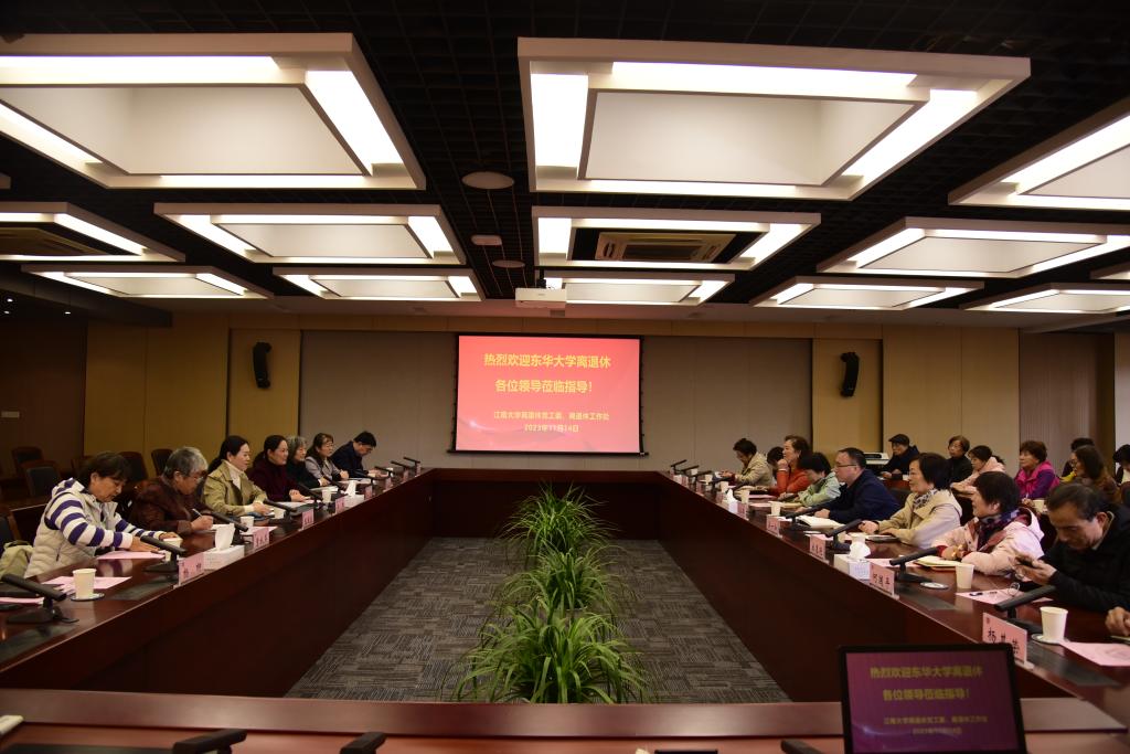 许群对东华大学来访一行表示欢迎,她从加强政治引领、践行五心理念、聚焦老有所为三个方面,较为全面地介绍了我校离退休党建工作的整体情况,并从推动文化养老、编印关爱手册、设立“关爱驿站”、推进“智慧助老”、争取社会资源、发挥银龄智库优势等方面分享了创新与特色工作。