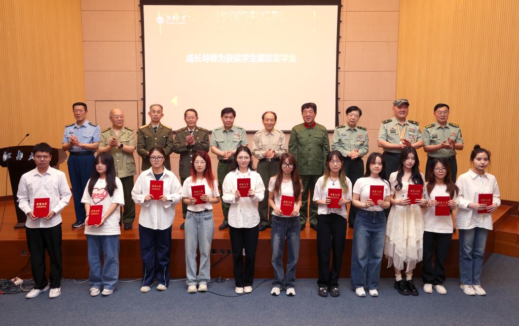 5月22日下午,江南大学关工委和无锡市退役军人事务局在江南大学远东报告厅联合举办“戎晖励行”奖助学金颁奖仪式。无锡市关工委副主任须俭,无锡市退役军人事务局党组成员、关工委主任、副局长傅强,局关工委常务副主任梅金超,局关工委副主任、军休中心主任陶延风,军休中心党委书记、关工委主任徐尚保,以及市关工委、局关工委、校关工委秘书长,军休中心(站)领导,军休老干部代表,锡戎之声合唱团、戎晖真情关爱团成员;江南大学党委副书记戴月波,校关工委常务副主任娄国栋,党委宣传部、学生工作处、离退休党工委、校团委、社会资源处与校友联络处的领导,商学院、法学院、人文学院、纺织科学与工程学院、物联网工程学院、人工智能与计算机学院的党委副书记、学院关工委常务副主任、分团委书记等老师,以及2022级预科班的全体同,共计近180人参加了会议,由商学院党委副书记徐静主持。