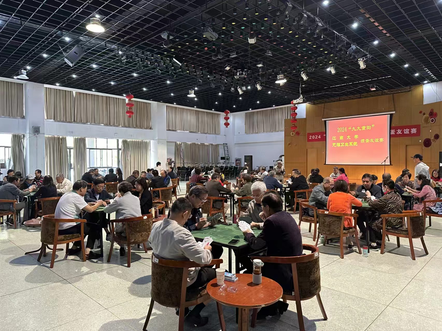 日前,江南大学老体协在南区大学生活动中心举办2024“九九重阳”江南大学-无锡卫生系统掼蛋友谊赛。参加掼蛋交流友谊赛的是江南大学老年体协掼蛋队和无锡市卫生健康系统老年体协掼蛋队近70名掼蛋爱好者,大家齐聚一堂,以牌会友,共同感受掼蛋的魅力,享受掼蛋带来的快乐。