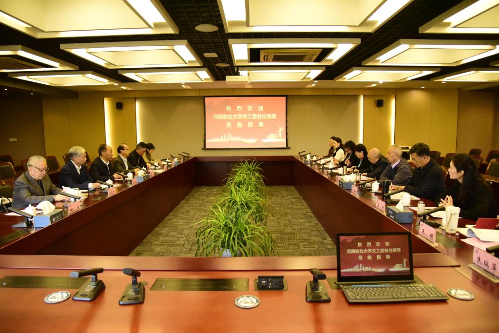 10月23日,河南农业大学关工委一行10人,在校党委副书记、校关工委主任游舸的带领下,来我校就高校关工委达标创优建设进行交流调研。我校党委常委朱飞,校关工委常务副主任娄国栋,离退休党工委书记、校关工委秘书长张才兴,食品学院党委副书记李雷,生物工程学院党委副书记林丹,校关工委副秘书长吴骥一等出席会议。会议由张才兴主持。