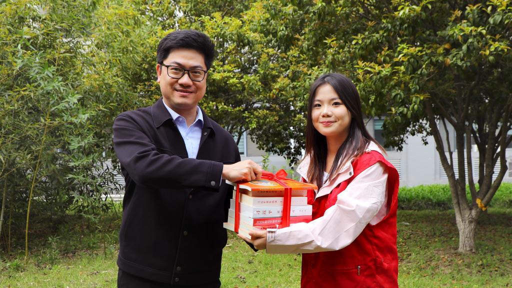 在赠书环节,校团委书记汪超为团员代表赠送《永恒的精神丰碑——焦裕禄》《习近平的七年知青岁月》等学习书籍,勉励同学们认真研读、深入思考,在阅读中感悟精神力量、锤炼品德修为,努力成长为有理想、敢担当、能吃苦、肯奋斗的新时代好青年。