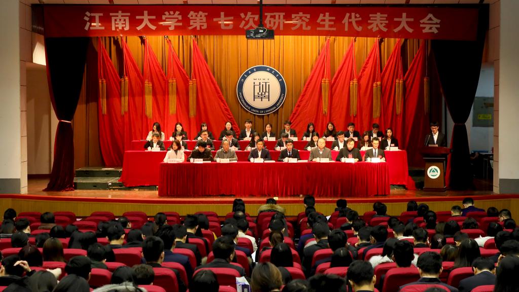 2019年1月12日上午,我校第七次研究生代表大会在南区大学生活动中心报告厅举行。江南大学党委副书记戴月波、江苏省学生联合会驻会执行主席朱熠晟、校党委办公室主任朱飞、校长办公室主任张光生、校党委宣传部部长倪松涛、校团委书记王维、校学生工作部副部长兼研究生工作部部长单筱婷、东南大学研究生会主席许涵及各高校研究生会代表、学校相关职能部门负责人、各学院负责人以及215名研究生代表出席了开幕式。
