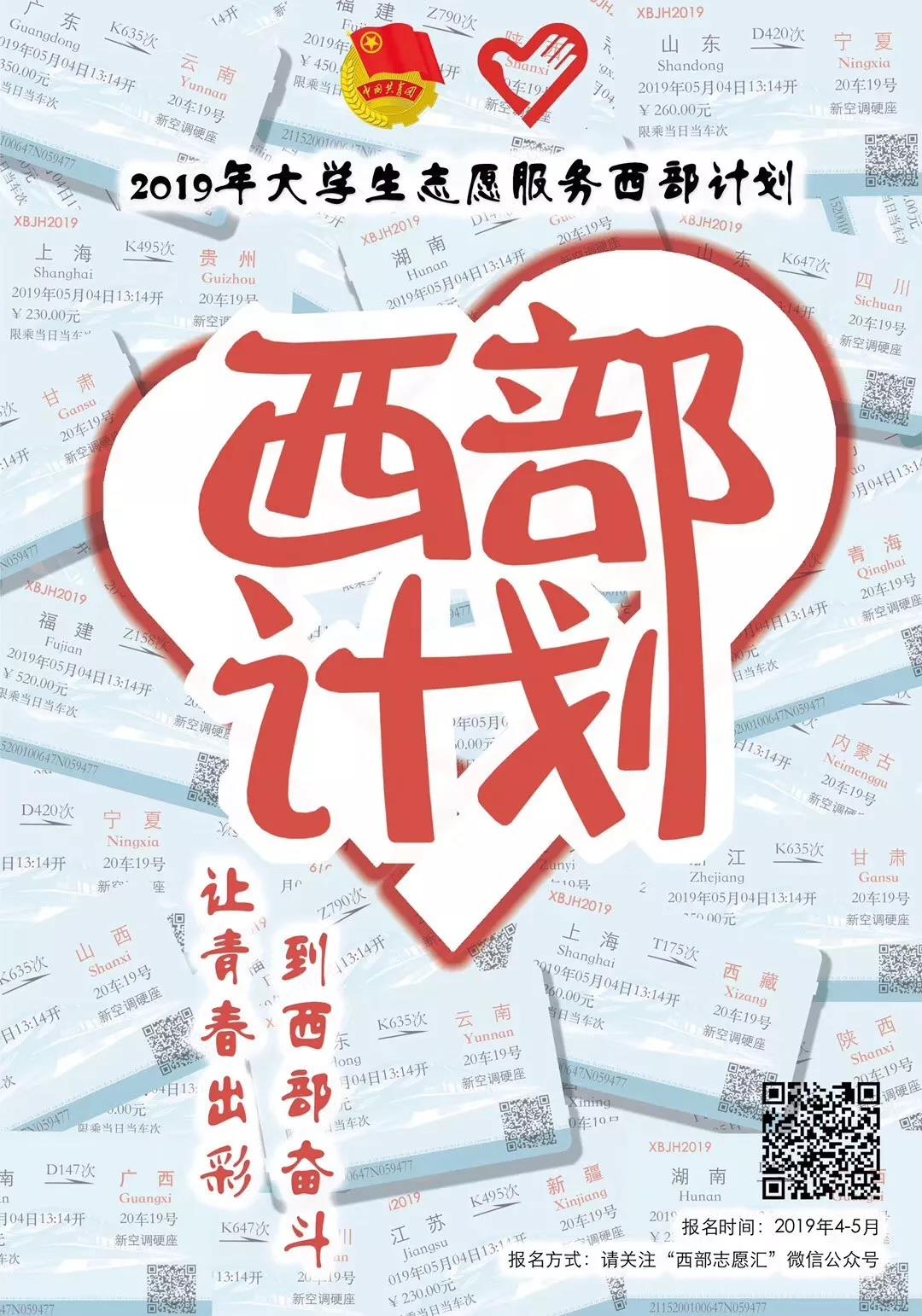 4月19日,由西部计划全国项目办发起的2019年西部计划招募宣传海报征集活动结果揭晓,我校牛思琪、赵斯铌两位同学的作品经过评比最终入选2019年西部计划招募宣传海报。