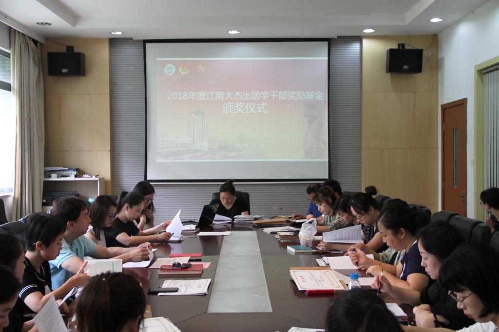 2018年7月2日,江南大学2018年度“杰出团学干部奖励基金”“高顿奖学金”颁奖仪式在北区大学生活动中心F111会议室举行。校团委书记王维、校团委副书记单云婷及我校团学骨干代表出席活动。