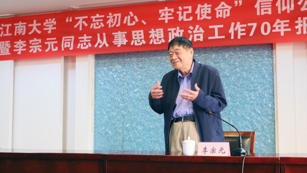 2019年10月23日上午,江南大学“不忘初心、牢记使命”信仰公开课暨李宗元同志从事思想政治工作70年报告会在文浩馆205会议室举行。活动特邀原无锡轻工大学党委副书记、副校长,江南大学关工委顾问李宗元同志作报告。校党委副书记戴月波、学生工作部(处)部长张菁燕、校团委书记王维、各学院党委副书记与全体专职团干部、全体辅导员参加了活动。活动由校党委副书记戴月波主持。