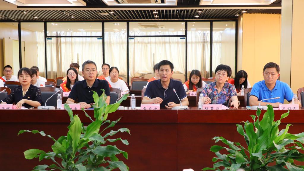 6月22日下午,江南大学2021年研究生支教团、西部计划、苏北计划志愿者出征仪式在行政楼B307会议室举行。江南大学党委副书记戴月波,招生就业处处长赵建新,学生工作部部长张菁燕,校团委书记孔祥年,相关学院党委副书记、副院长及分团委书记、2021年研究生支教团、西部计划、苏北计划志愿者以及往届志愿者代表参加了出征仪式。校团委副书记单云婷主持会议。