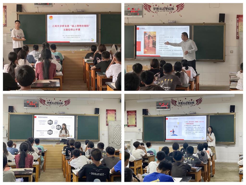 近日,为帮助芒宽民族中学初三学子树立远大理想,江南大学第23届研支团云南分队的四名成员分别以“觉醒年代”“读万卷书,行万里路”“做一个高效能的人”“梦想从这里启航”为题,给同学们带来了别开生面的“开学第一课”——“插上理想的翅膀”信仰公开课。