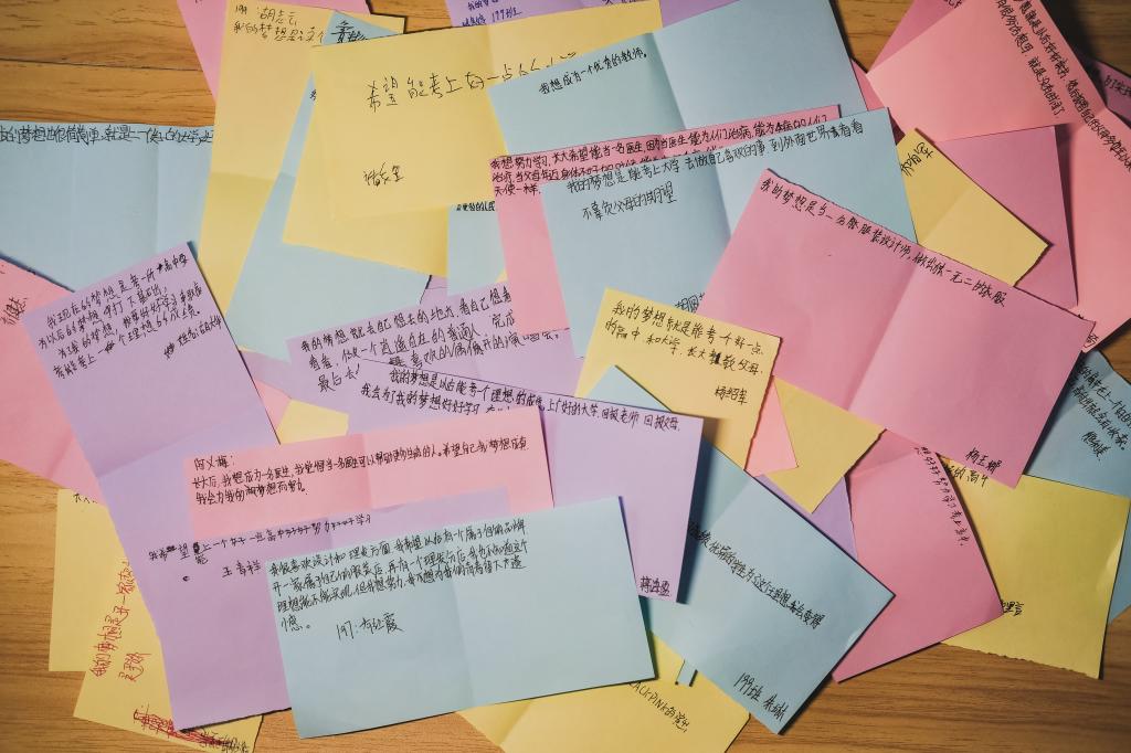 在信仰公开课的最后环节,研支团成员请每位同学在彩色纸上写下自己的理想。胡大华说:“我现在的梦想是考上一所好的高中,为以后进一步逐梦打下基础。”阿义梅讲道:“我的梦想是成为一名医生,以后可以帮助更多的人。”乔红霞分享道:“我很喜欢设计,希望以后有一个属于自己的品牌,开一家属于自己的服装店。虽然我不知道这个理想能不能实现,但我会努力,我不想让我的青春留下遗憾。”