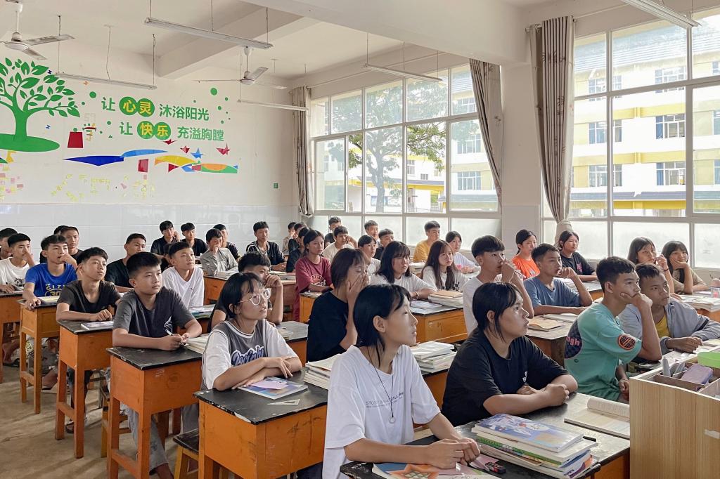 研支团成员孙宇廷通过讲述党的光辉历程,在同学们心中埋下了一颗爱国的种子;严豪则和大家分享了自己“如何走出大山”的故事,他讲道:“我希望大家通过自己的努力,能够走出去看看外面的世界,它比我们想象中更加绚丽多姿”;原韵则结合自身经历,引导同学养成良好的学习习惯和掌握科学的学习方法;吕铃怡通过讲述古今中外名人的励志故事,鼓励初三的孩子们树立梦想、追逐梦想、实现梦想。