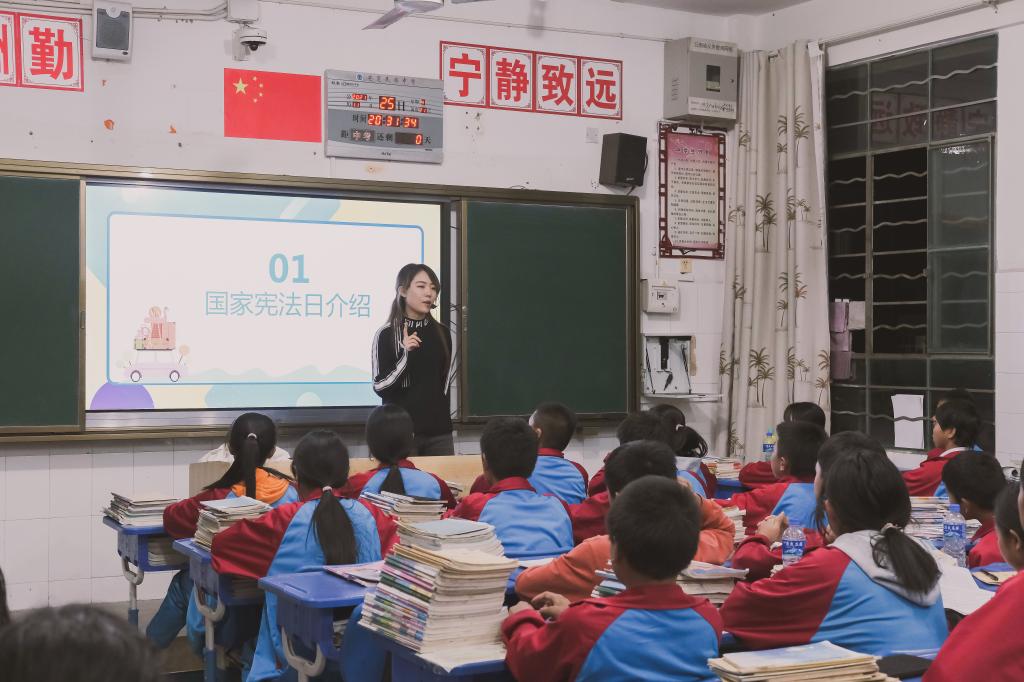 在全国第八个国家宪法日来临之际,为进一步加强法治宣传教育,增强学生对宪法知识的了解,江南大学第23届研究生支教团云南分队在芒宽民族中学215班开展“宪法在心中”主题班会。
