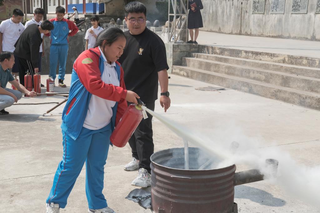 芒宽民族中学坐落于高黎贡山脚下,为进一步普及森林防火知识,学校还开展了消防知识培训和演练。安全处主任李文清老师从灭火器的类型和使用方法、日常消防知识以及火灾处置原则等方面进行详细讲解,随后点燃火堆示范灭火器的正确用法,同学们也在老师的指导下开展操作演练。