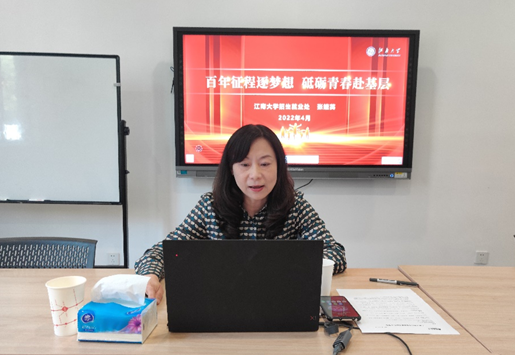 4月24日下午,江南大学学生会、研究生会联合举办基层就业导航宣讲会,邀请校招生就业处副处长张婕英老师就当前选调政策、我校导向就业服务工作及职业规划建议等,为有志于基层就业的同学指点迷津。宣讲会严格遵守疫情防控要求,全程均在线上进行,近三百名同学参加了宣讲会,会议由校学生会主席团成员王一禾主持。