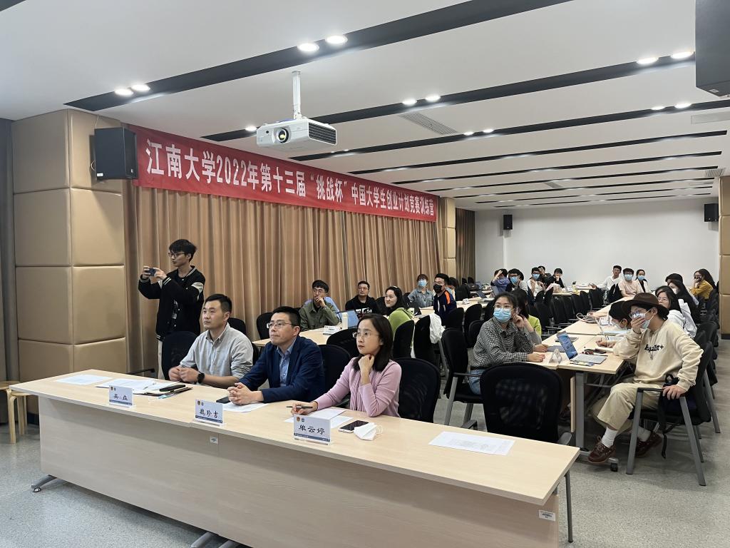 4月28日下午,江南大学第十三届“挑战杯”中国大学生创业计划竞赛江苏省赛训练营顺利开营,开营第一次集中演练和辅导在校团委F212会议室以线上线下形式举行,校团委书记魏珍吉,副书记单云婷、吴垚参加本次开营活动,通过校内选拔赛终审决赛进入训练营的14支参赛项目团队成员及相关学院分团委书记和团干部共同参加本次集训。
