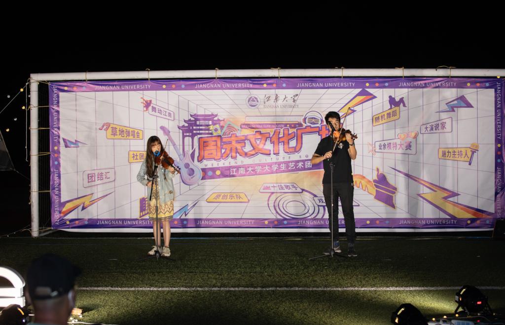 近日,江南大学2022年周末文化广场迎新专场活动在西北操场成功举办。本次活动由校团委主办,校大学生艺术团、社团管理部联合承办,活动围绕迎新工作,旨在让新生感受江南学子青春活动的精神风貌和丰富多彩的大学业余文化生活。活动在周末举行,以露天电影、草地舞会、草地音乐会等户外活动的形式开展,获得良好反响。