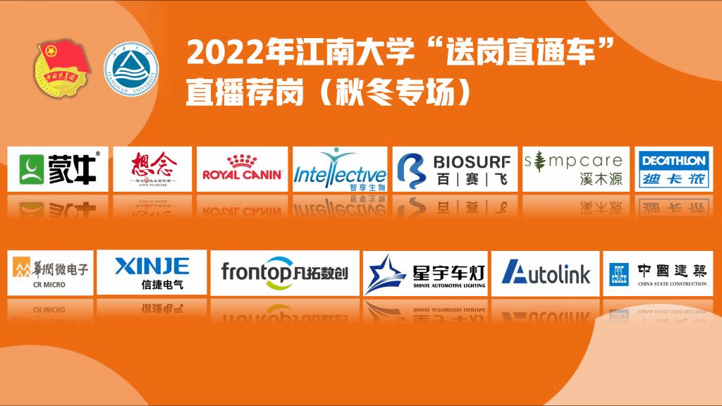 本次直播荐岗活动得到了众多优质企业的大力支持,前期通过校院两级团组织广泛发动,面向董事单位、长期友好合作企业及行业知名企业广发邀请,并梳理下半年来所有来校招聘单位信息,共为毕业生募集了978家企业的7242个岗位,开展线上推送。同时,结合直播特点和学生兴趣,依托一流学科优势及相关学科在地区和行业影响力,精选食品、生物技术、化工、智能制造、数字媒体、基建等行业,共14家龙头企业、知名企业参加了本次直播荐岗活动,所推荐的岗位覆盖全校本硕博全部专业。荐岗企业包括:全球乳企7强公司蒙牛集团、农业产业化国家重点企业想念食品、宠物健康营养领域全球公司玛氏皇家宠物食品、生物药研发与生产1站式CDMO苏州智享生物、生物技术创新研发企业江苏百赛飞生物科技有限公司、美妆新锐“独角兽”企业溪木源、“世界500强”中国半导体企业华润微电子、工业自动化上市企业无锡信捷电气、数字创业上市企业凡拓数创、车灯制造龙头企业星宇车灯、智能汽车企业车联天下、建筑龙头企业中建一局、中建四局六公司以及知名全球运动品牌迪卡侬。